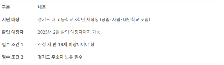- 경기도 내 학교 다니는 고3만 가능 (거주지가 아니라 재학 기준)