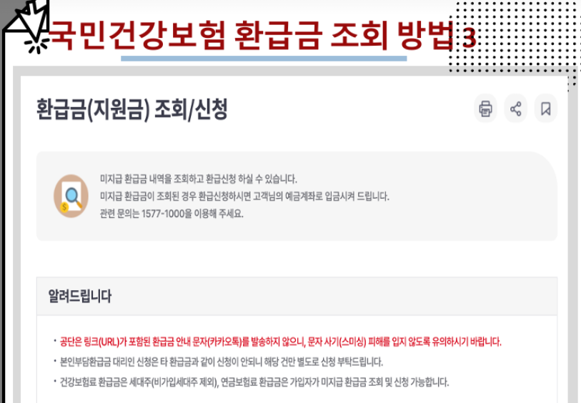 국민건강보험 환급금은 공식 홈페이지·앱·고객센터를 통해서만 신청하세요. 문자 링크 클릭은 절대 금물입니다.