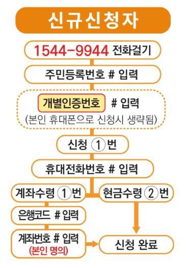 신청대리서비스를 요청할 수 있으며, 주민등록번호, 지급받을 존인 명의계좌를 준비합니다
