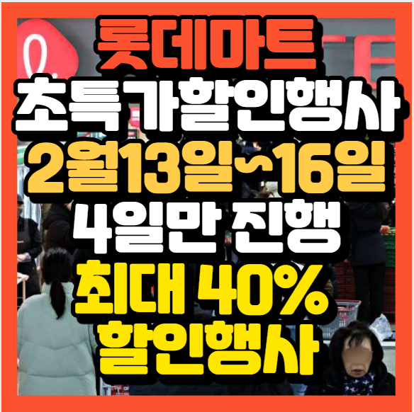 롯데마트가 오는 2월 13일부터 16일까지 단 4일 동안 초특가 할인 행사를 진행합니다.