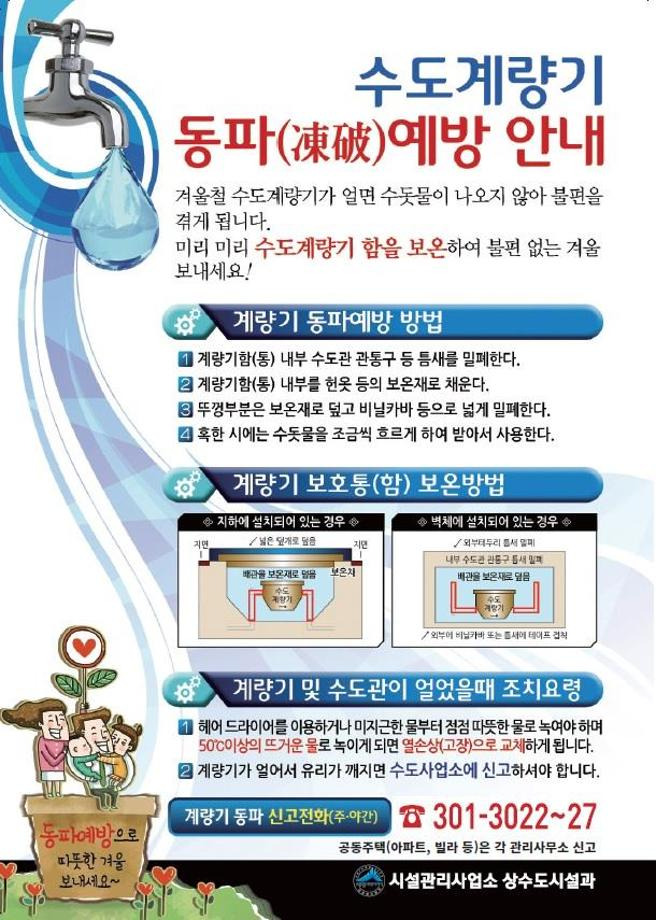 따라서, 시민 여러분께서는 동파 예방을 위해 적극적으로 대처해 주시기 바랍니다.