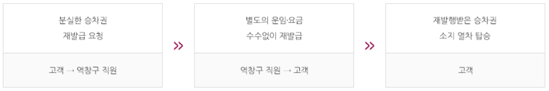 - 승차권을 분실하는 경우 승차권에 대한 운송 변경 환불을 청구할 수 없습니다.