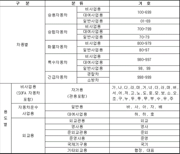 자동차 번호판은 일상 속에서 차량 용도와 종류를 식별하는 유용한 수단입니다.