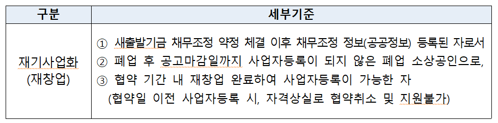 - 최근 3년 이내에 사업을 운영했으나, 경영 악화로 인해 어려움을 겪고 있는 경우
