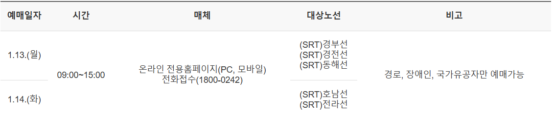 2025년 설 명절 SRT 승차권 예매 일정이 확정되었습니다.