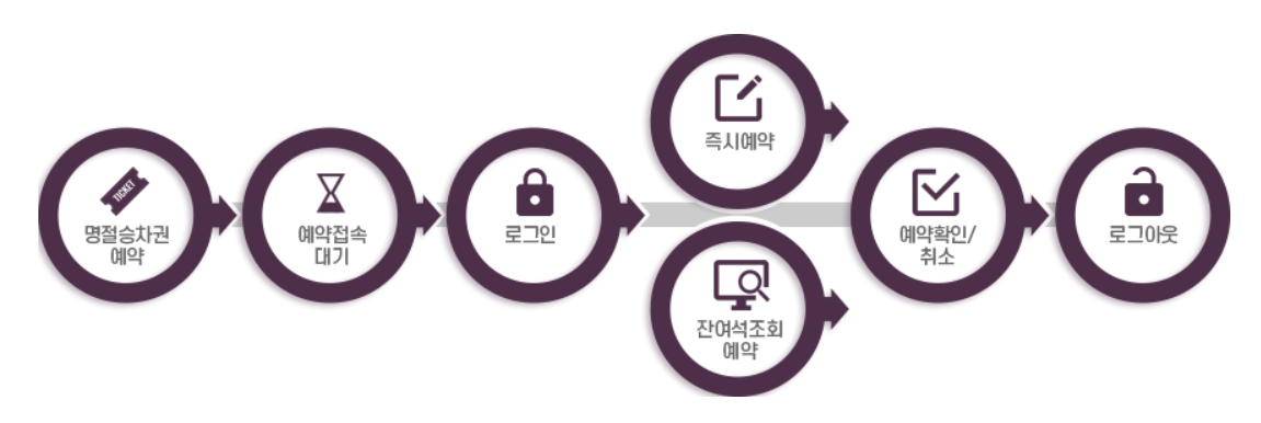 • 동일한 시간대 열차는 중복 예약되지 않으며, 단거리 구간예매는 중지됩니다.