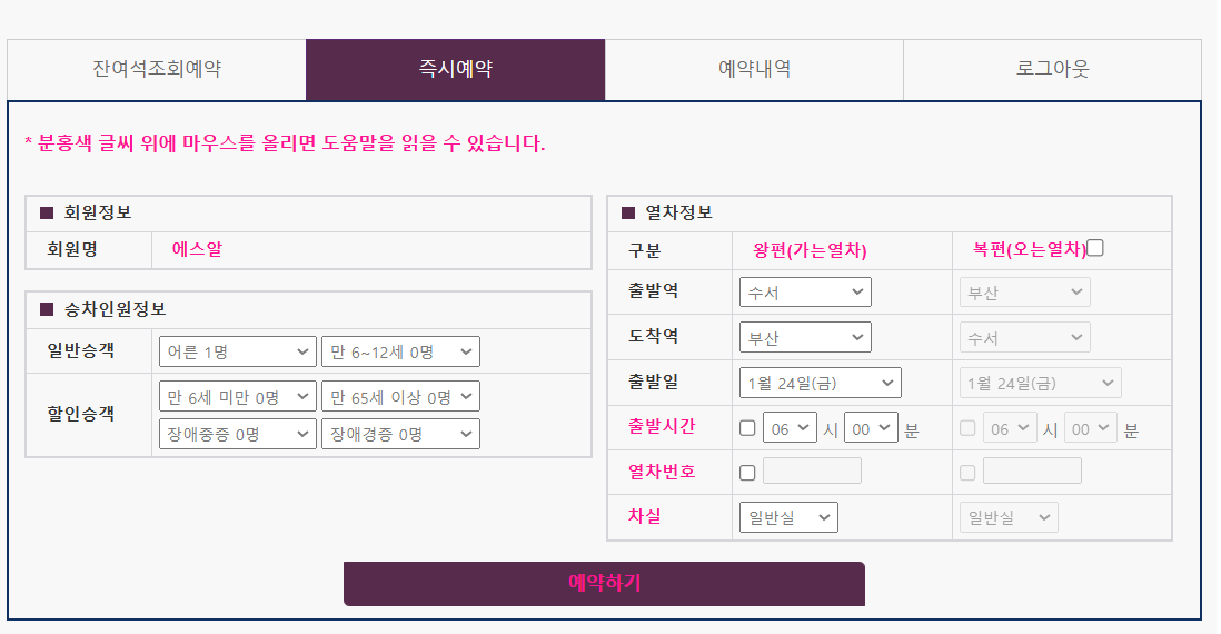 잔여석조회예약