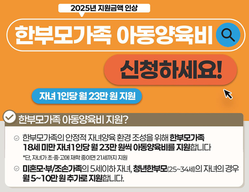2025년 한부모 가정 양육비는 ‘저소득 한부모 가구’를 중심으로 지원됩니다.