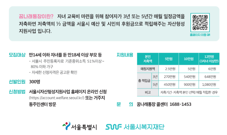2025 서울 꿈나래통장 자녀의 교육비 마련 지원통장 신청방법 신청대상 지원내용