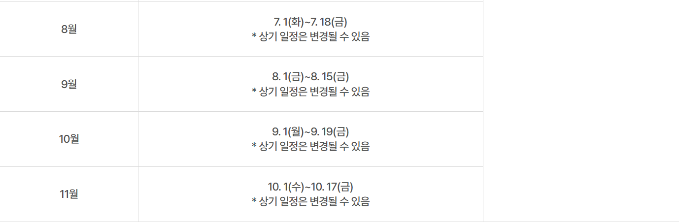 - 신청은 연중 상시 가능하지만, 프로그램별로 정해진 인원이 있으므로 빠른 신청을 권장합니다.