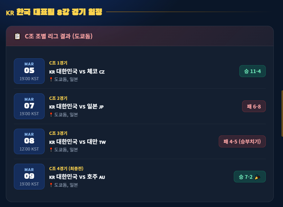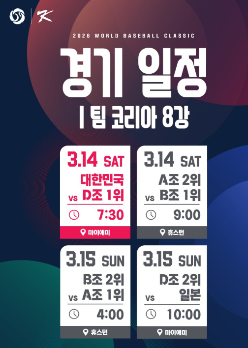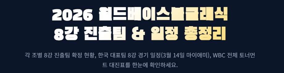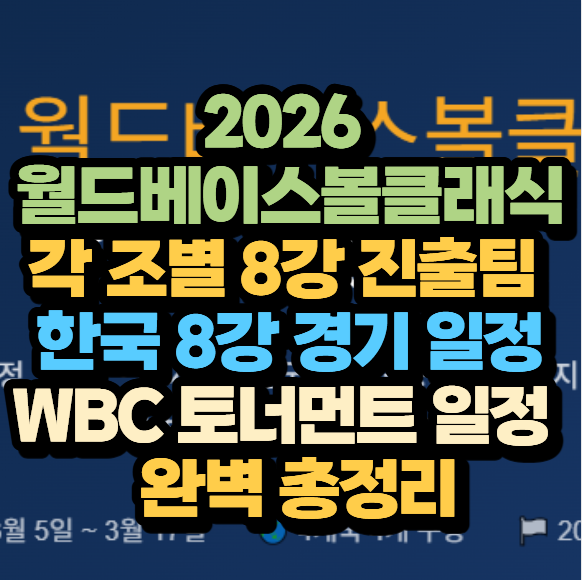 | 2026월드베이스볼클래식 일정 장소 참가국 한국경기일정 중계채널 총정리 (0) | 2026.03.09 |