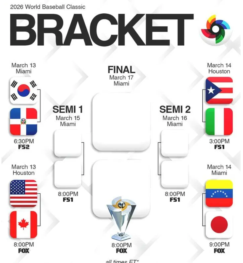 2026 월드베이스볼클래식 8강전 대진표는 아래와 같습니다.
