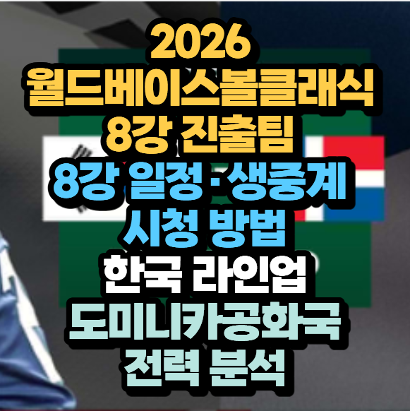 | 2026 월드베이스볼클래식 각 조별 8강 진출팀은어디? 한국 8강 경기 일정WBC 토너먼트 일정 총정리 (0) | 2026.03.10 |