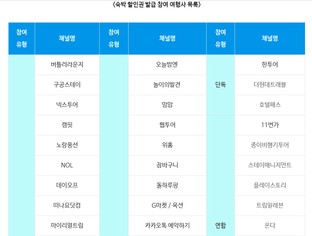 🏷️ 다양한 숙박 할인 상품 및 채널 정보